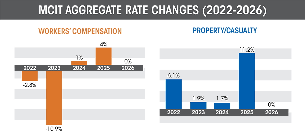 By adopting Anderson’s recommended rate analysis of holding workers’ compensation rates flat in the aggregate for 2026, the net effect is general rate stability for the membership. Within this line of coverage, MCIT works with members to categorize payroll by position into approximately 30 different classification codes that align with each employee’s job duties.