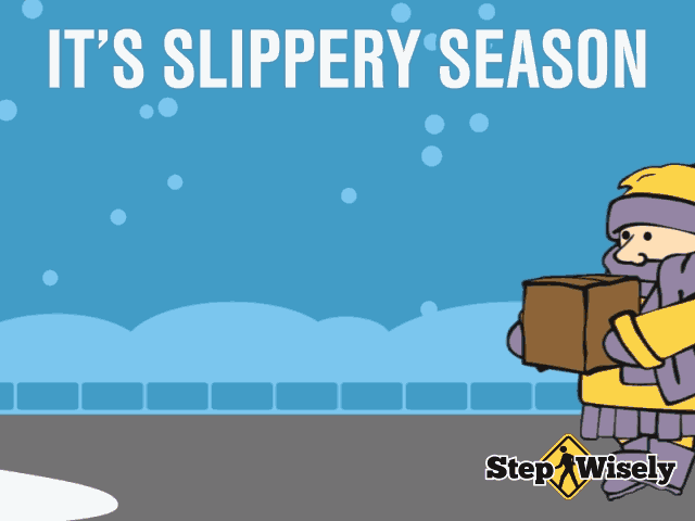 Help prevent and lessen winter slip, trip and fall incidents by using this animated GIF to get employees thinking about slip, trip and fall hazards and what they can do to avoid injuries due to winter weather conditions.