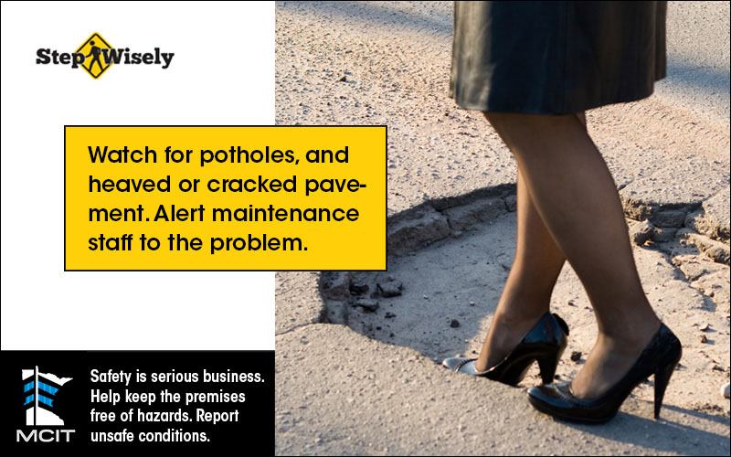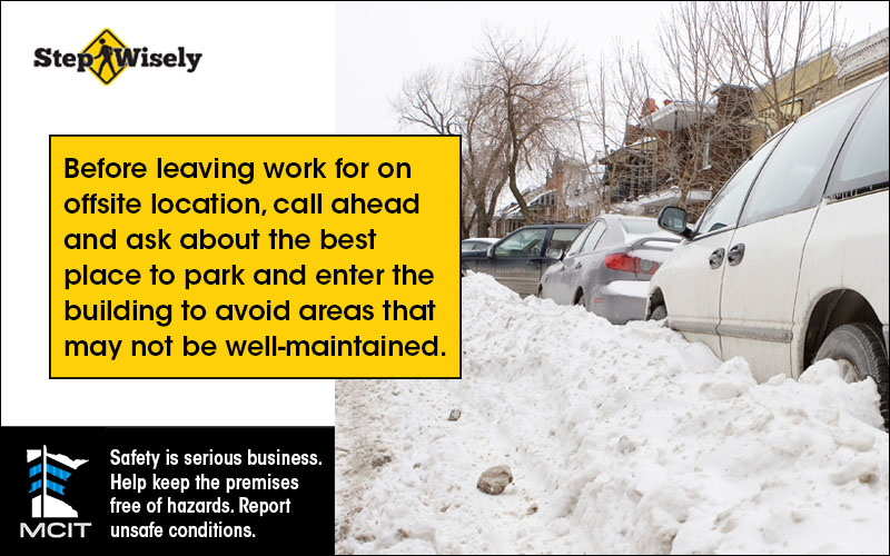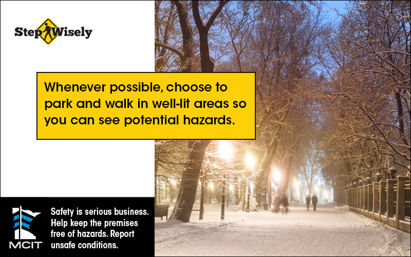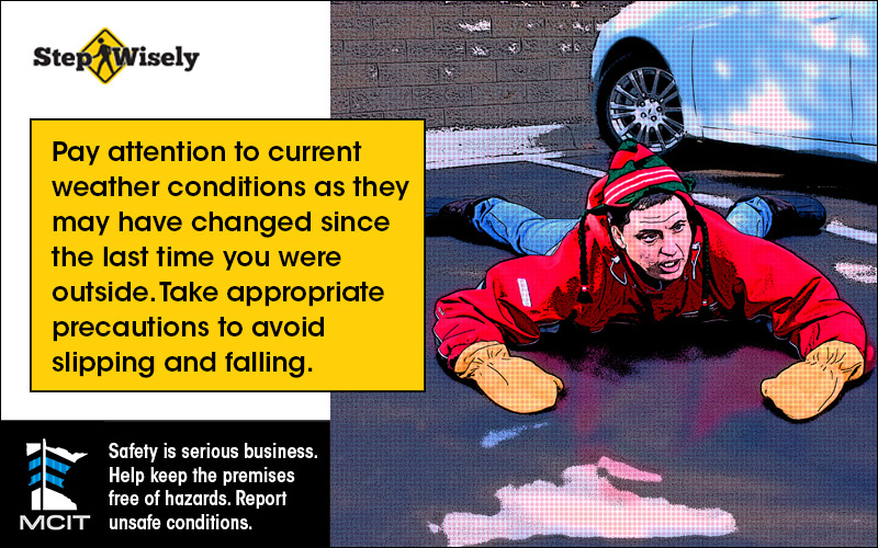 MCIT’s Step Wisely program helps make slip, trip and fall prevention efforts easy for its members. Slip, trip and fall incidents are particularly prevalent during Minnesota winters. Providing your employees and the public information to help them make safer behavior choices could keep your employees from being injured and save your organization significant costs, time and grief related to those injuries.