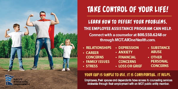 Promote the Employee Assistance Program to employees and officials using the below poster and digital image. It reminds individuals that EAP professionals are available to help them develop strategies to defeat their problems.