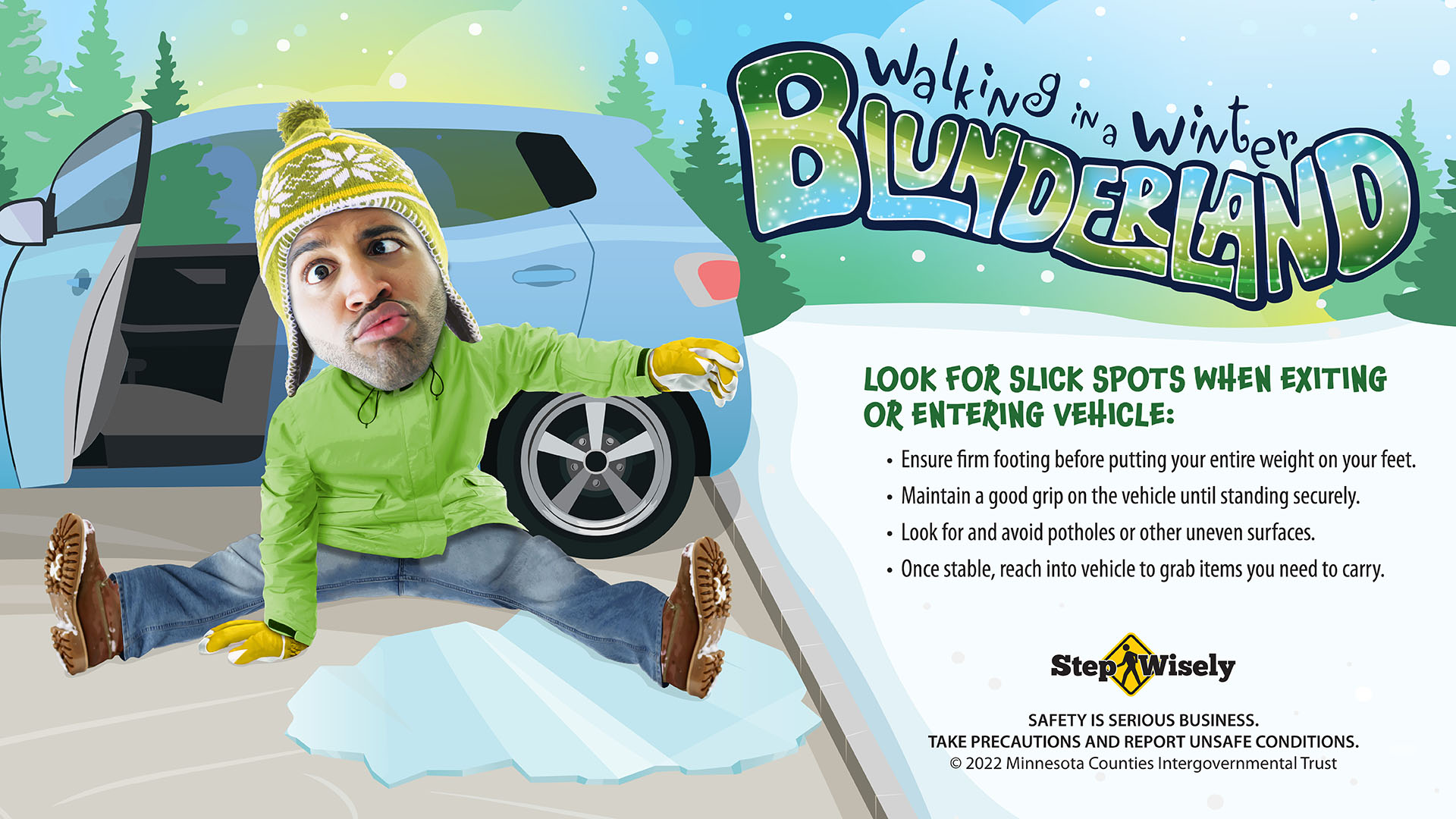 MCIT’s Step Wisely program helps make slip, trip and fall prevention efforts easy for its members. Slip, trip and fall incidents are particularly prevalent during Minnesota winters. Providing your employees and the public information to help them make safer behavior choices could keep your employees from being injured and save your organization significant costs, time and grief related to those injuries.